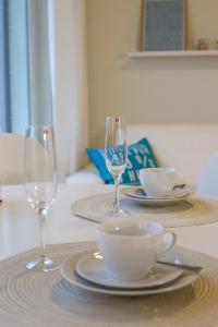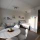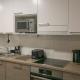 Die Ferienwohnung verfügt über eine voll ausgestattete Küchenzeile mit Herdplatte, Backofen, Kühlschrank, Mikrowelle, Toaster sowie einer Kaffeemaschine inklusive Kaffee- und Teezubehör. Ein Esstisch lädt zum gemeinsamen Essen ein. Zur weiteren Ausstattung gehören ein Sitzbereich mit Sofa und Flachbild-TV, schallisolierte Wände für ruhige Stunden sowie ein Badezimmer mit ebenerdiger Dusche und Haartrockner. Handtücher, Bettwäsche sowie Kissen ohne Federn oder Federkissen sorgen für zusätzlichen Komfort.