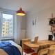 Apartament dysponuje aneksem kuchennym wyposażonym we wszystkie niezbędne urządzenia: płytę kuchenną, lodówkę, zmywarkę, czajnik elektryczny, kuchenkę mikrofalową oraz przybory kuchenne wraz ze stołem i tosterem. W części wypoczynkowej goście mają do dyspozycji telewizor z kanałami kablowymi oraz bezpłatne Wi-Fi. Ponadto wyposażenie obejmuje biurko do pracy, pralkę wraz z suszarką na ubrania i żelazkiem ze sprzętem do prasowania. Sypialnię wyposażono w jedno łóżko, ręczniki i pościel są zapewnione dla wygody gości.