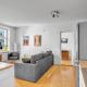 El apartamento dispone de una cocina americana completamente equipada con horno, microondas, tostadora, cafetera y nevera entre otros utensilios esenciales para facilitar su estadía. Cuenta además con dos camas distribuidas entre el dormitorio separado y el sofá cama del salón. El baño privado incluye ducha o bañera combinada con bidet y artículos gratuitos como gel o champú garantizando comodidad total durante su estancia.